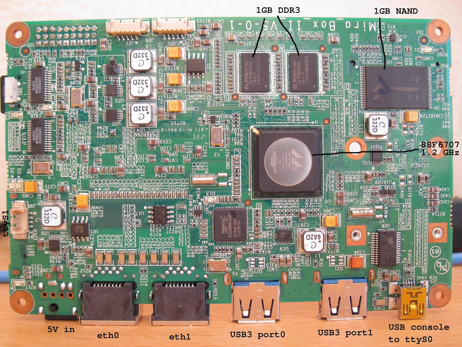 The Dockstar is nice but still limited to one port and has limited performance. After all the overheating issues, GlobalScale finally abandonned the GuruPlug Server Plus and replaced it with the DreamPlug which was a much nicer and safer design. I had one in hands and was considering buying one. I'm among the people who complain a lot about poor quality and point the finger at companies who put awful products on the market and do nothing to fix them. But when these people go back to the blackboard to completely redesign the product, I applaud. So I was OK with ordering a new product from them again.When wandering on GlobalScale's web site last year, I noticed some teasing for the upcoming Smile Box, then the Mirabox. Both were using the same platform, a new Marvell Armada370 (ARMv7) at 1.2 GHz. The Mirabox has 1GB of RAM, 1GB of NAND flash, 2 GigE ports, a PCIe port, a MicroSD slot, an RTC with a battery, 2 USB3 ports, well it looked really nice. It was not much more expensive than the DreamPlug, so I finally decided to order one as well as a JTAG adapter in case things go wrong.
